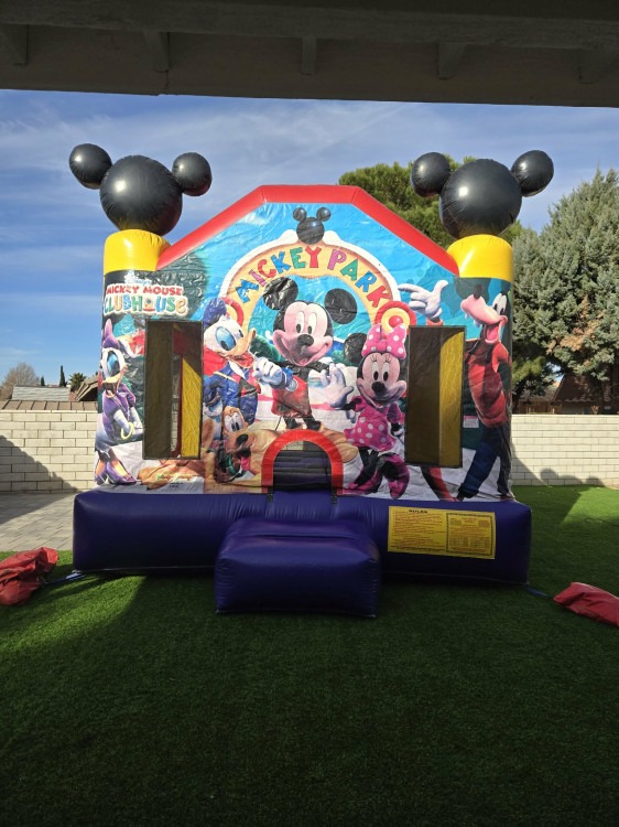 Bring the beloved world of Mickey Mouse Clubhouse to your party with this vibrant 13x13 inflatable bounce house. Designed with bright, family-friendly colors and iconic Mickey-themed accents, it offers a fun, safe space for young guests to jump, play, and imagine. The 13x13 footprint provides generous room for several children to bounce together while still fitting comfortably in most backyards or event spaces. Built with durable materials and reinforced stitching for regular rental use, it includes a secure entrance/exit and mesh windows for airflow and easy supervision. Perfect for birthday parties, family gatherings, school events, or any celebration where kids’ smiles are the priority.