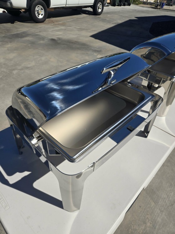 Keep food warm and service flowing with this essential catering staple. These stainless-steel chafing dishes are designed for buffet-style events, allowing hot entrees and sides to stay at safe, appetizing temperatures throughout your rental period. Easy to set up and refill, they create a polished, professional presentation on any serving line or banquet table. Ideal for weddings, corporate functions, parties, and any gathering where guests serve themselves, chafers help maintain consistent heat while minimizing fuss so your event runs smoothly.